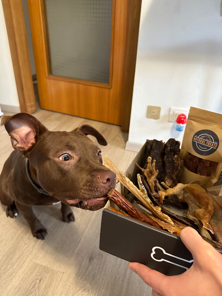 Depending on your dog, each box is designed to provide a month of natural treats and chews.